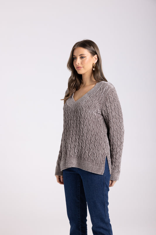 V Neck Chenille Cable Knit
