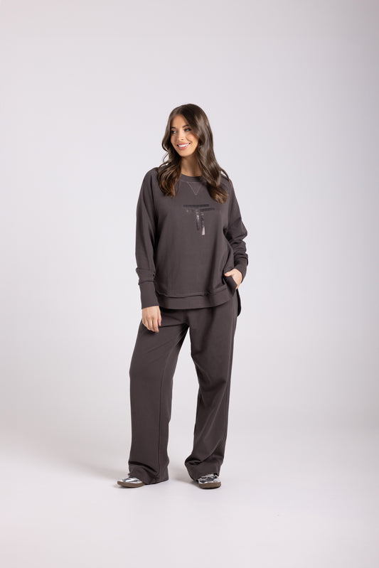 Scoop Hem Sweat with Sequins