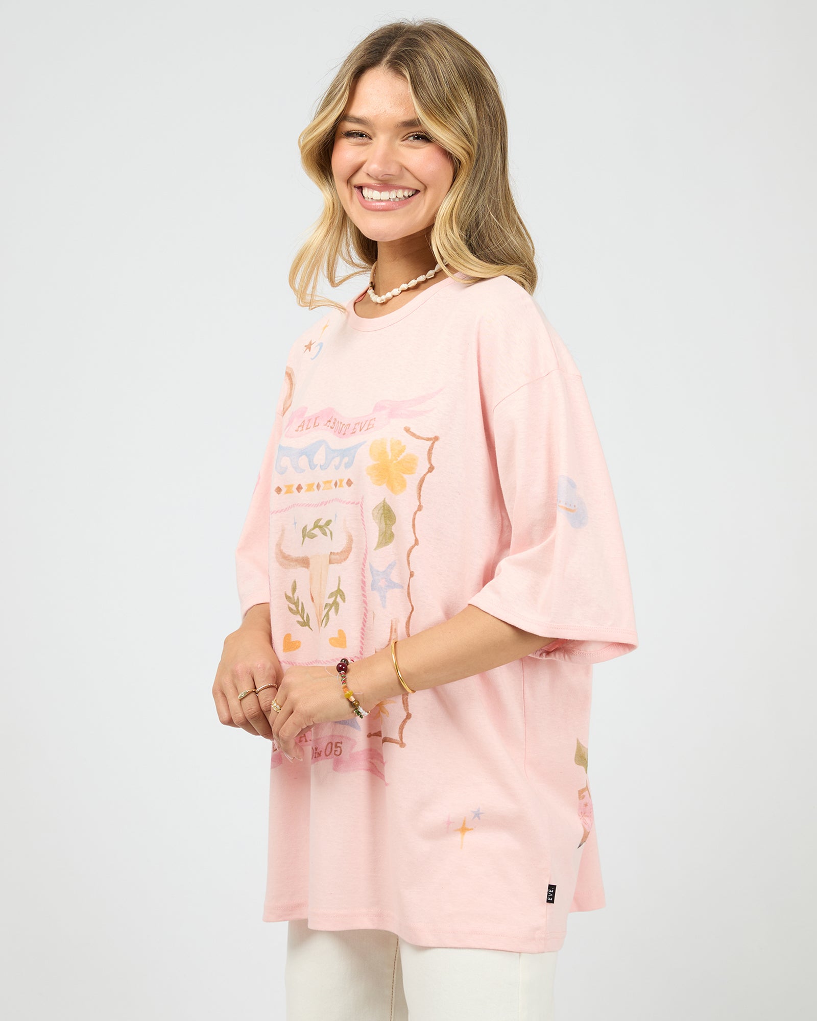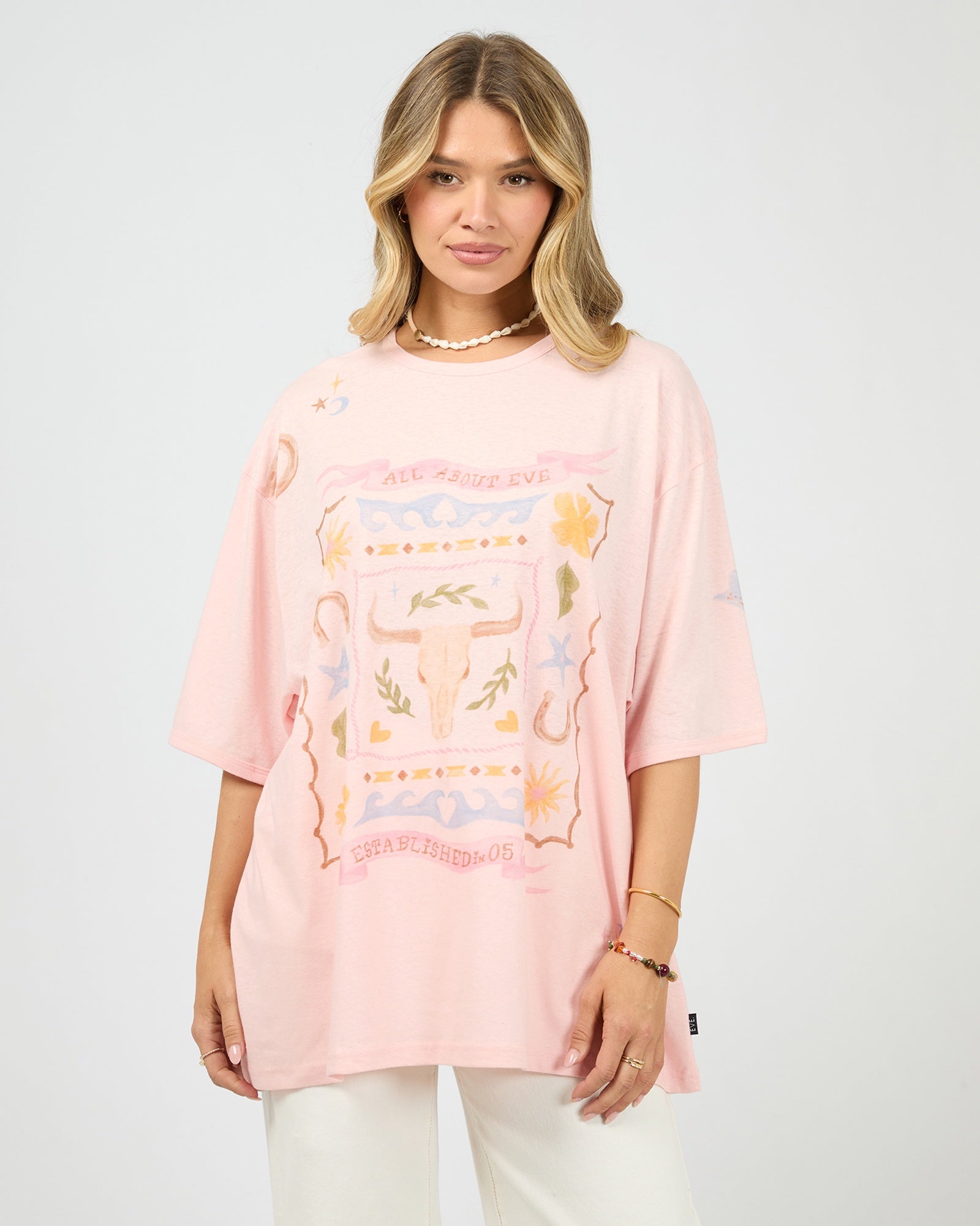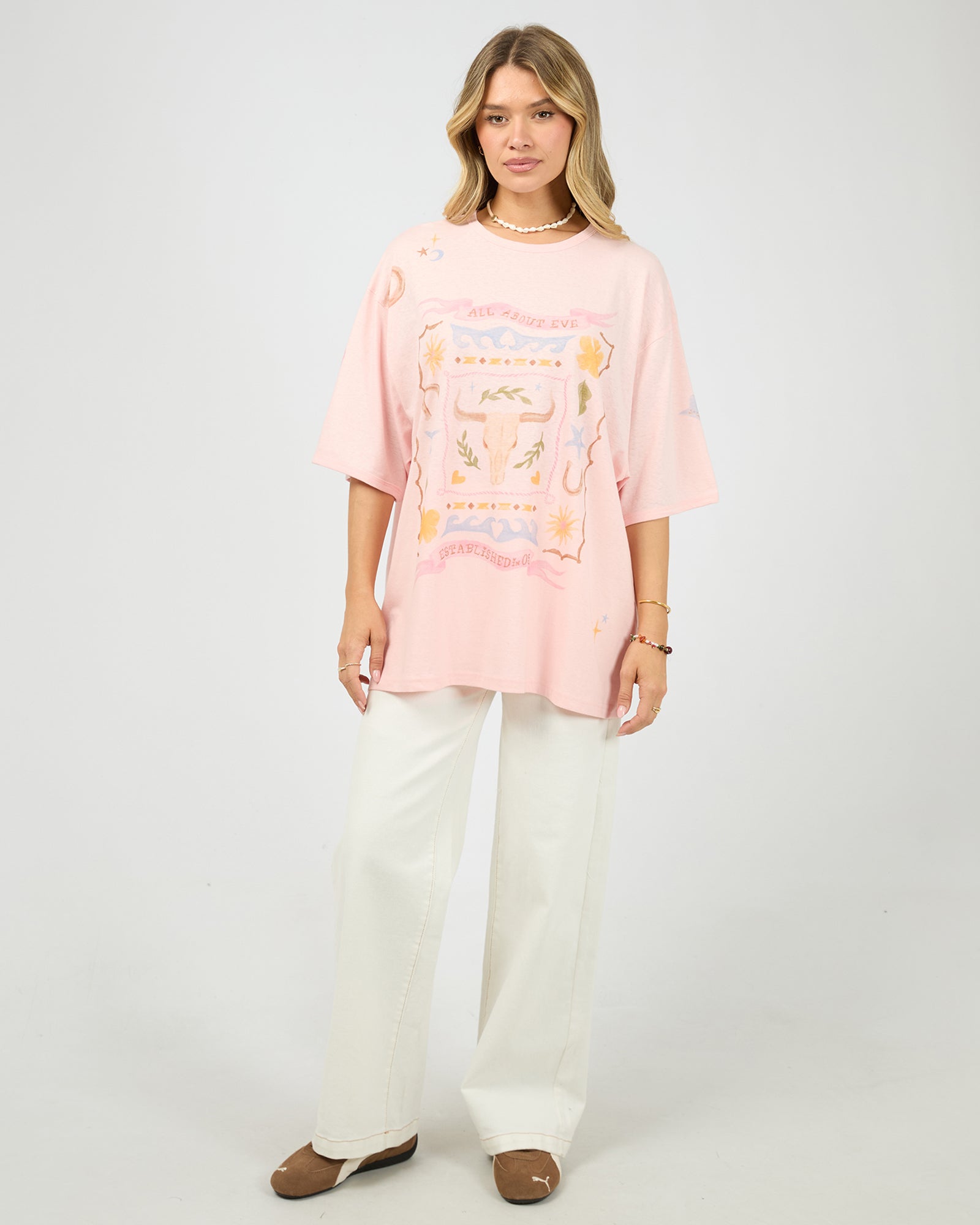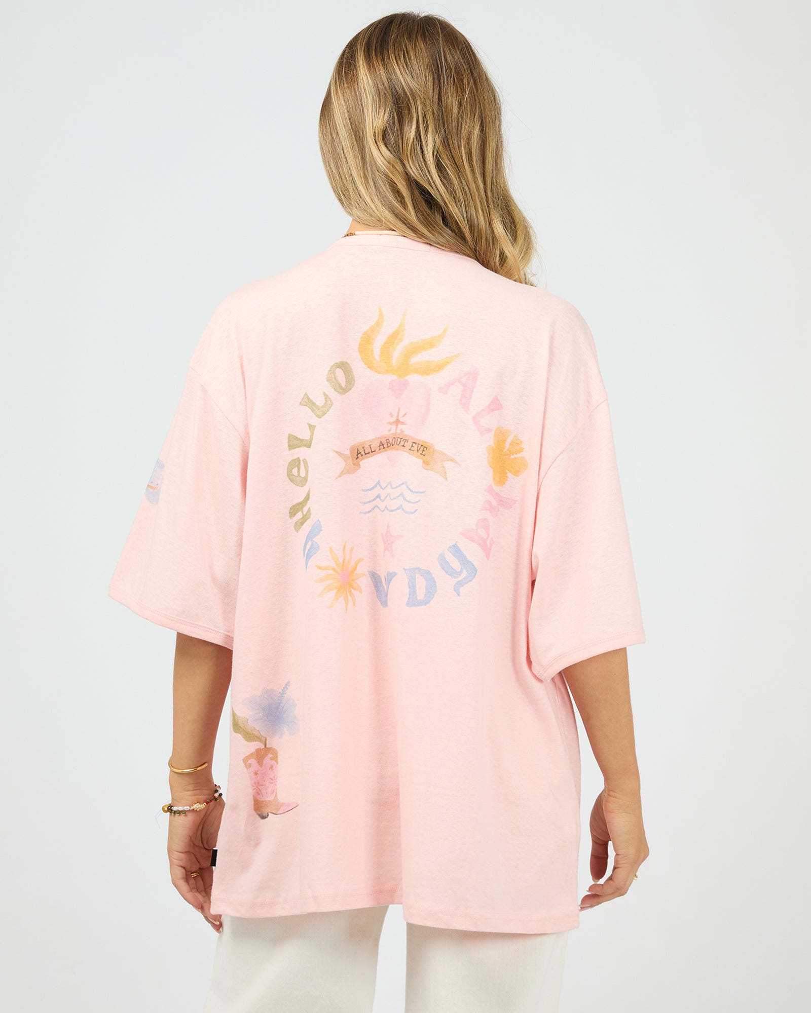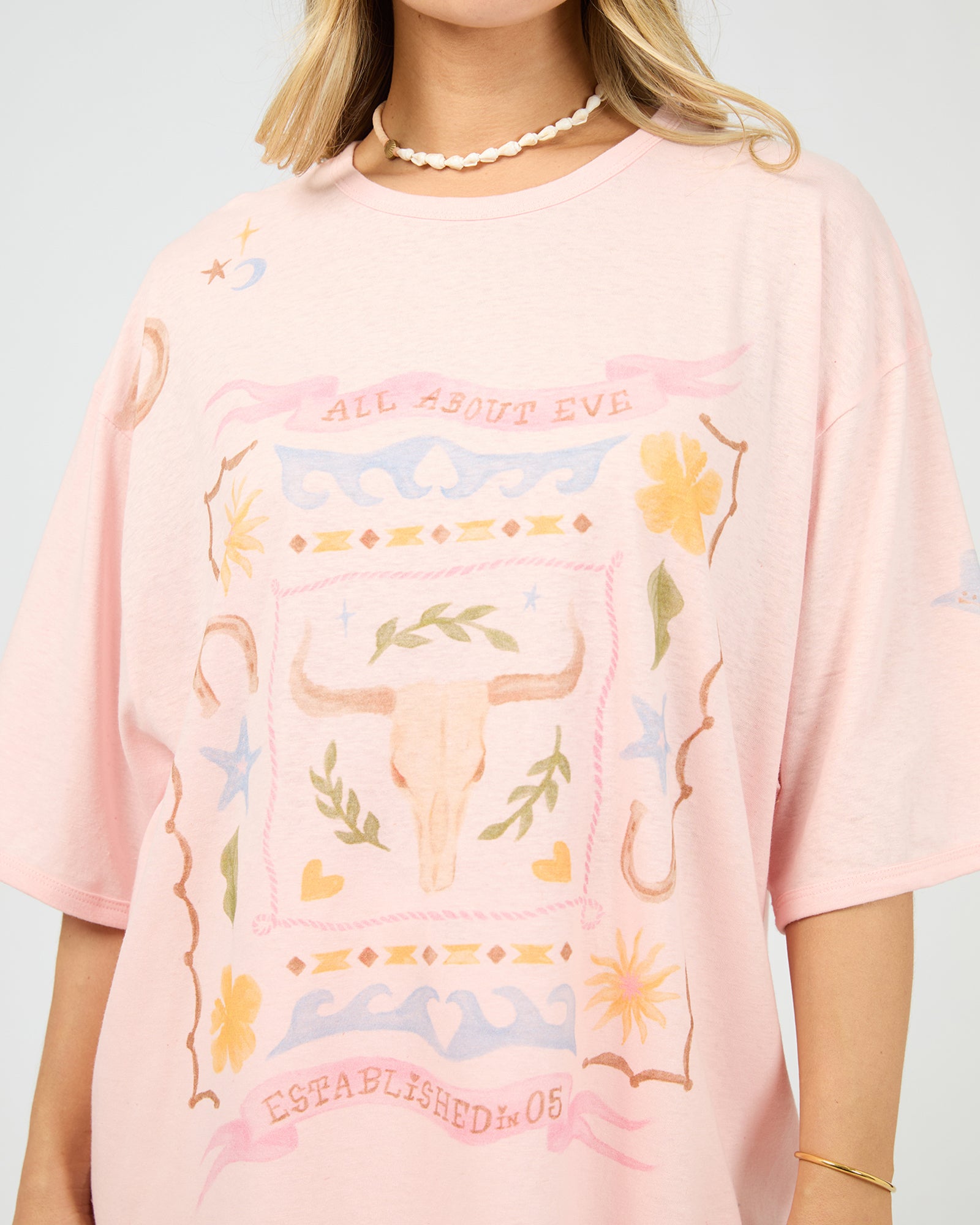 Say ALOHA to our new oversized tee fit! With Hawaiian cowgirl inspired graphics in bright colours the tee is crafted from cotton linen blend and has been washed for that vintage feel / look we all love! The Aloha Howdy Oversized Tee is a must-have to pair back with All About Eve denim and boots.