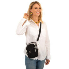 Internal Features: Lined with satin twill in a plum colour. Three “pouches” for all possessions. The outermost pouch is covered with a flap easily lifted with a ring pull. The centre and back pouches are spacious enough to carry all the essentials – phone, glasses, keys and a small water bottle.