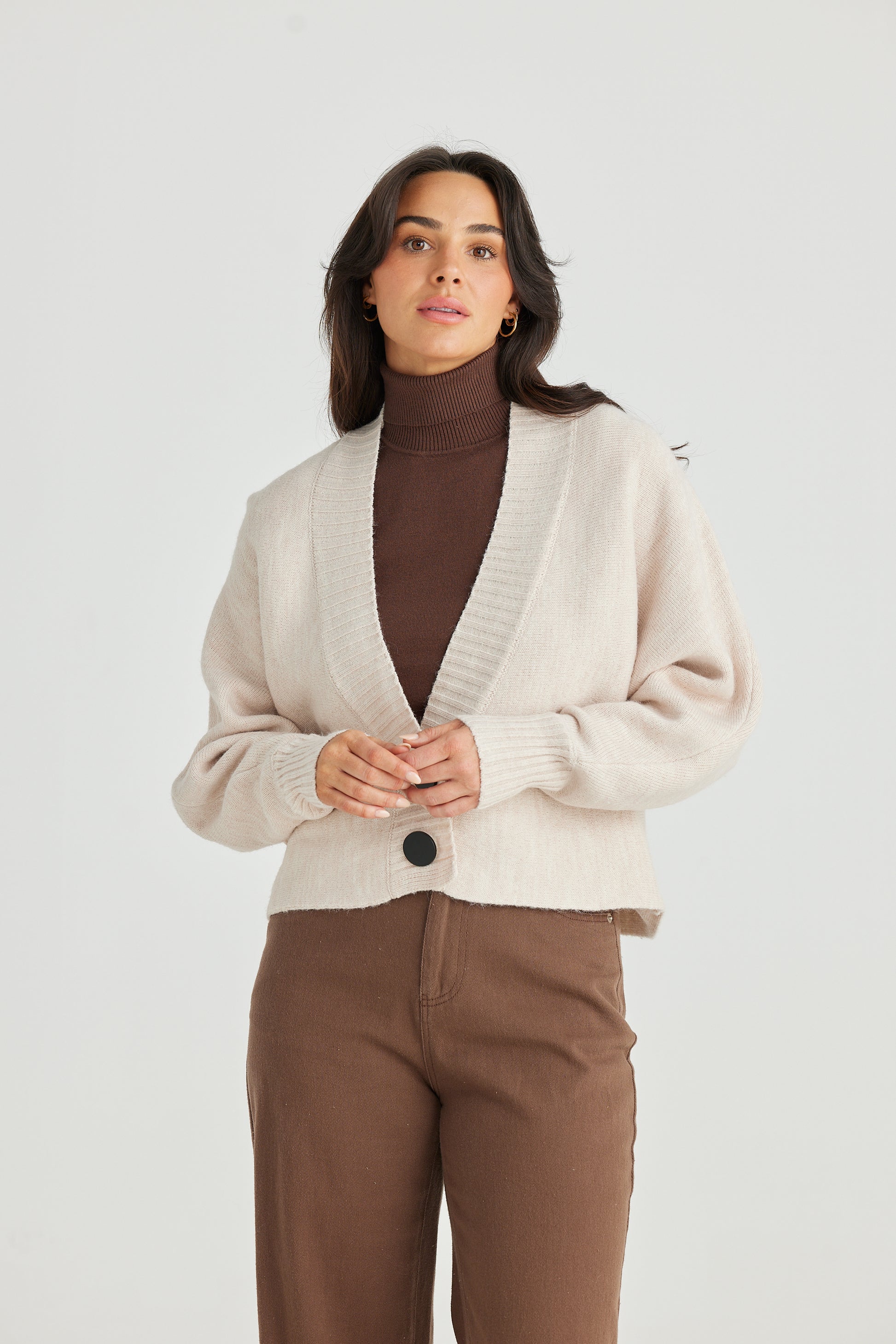 Stay cozy and stylish with the Fallon Cardi. This oversized, comfortable sweater features a low V neckline and ribbing at the neckline, cuffs, and hem. Perfect for layering, it's the ultimate combination of comfort and fashion. (And yes, it's just as delightful as it sounds). BUST = S/M: 148cms, M/L: 156cms |