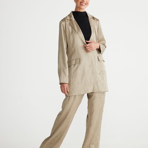 This longline statement blazer is perfect for your next big event! In a relaxed crinkle satine, the Glow Up Jacket from Brave & True will style back perfectly over your favourite dress, pant or skirt!