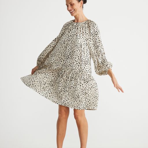 Wow, the In Motion Dress from Brave + True is absolutely stunning! We love the gathered neck detail, knee length mini dress, and raglan armhole with balloon sleeve and elasticized dropped seam detail with gathered skirt. This dress is sure to make a statement and is sure to be a wardrobe favorite for any occasion.