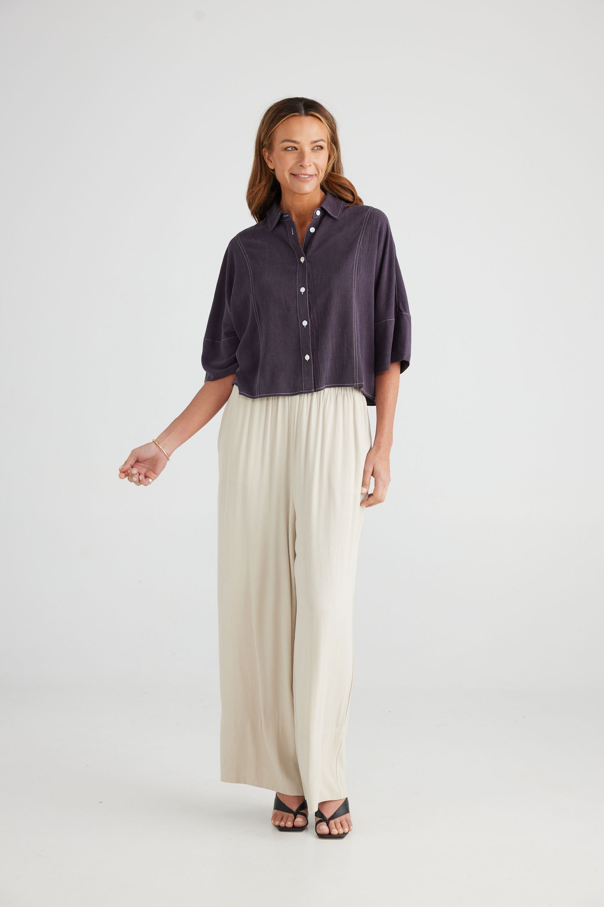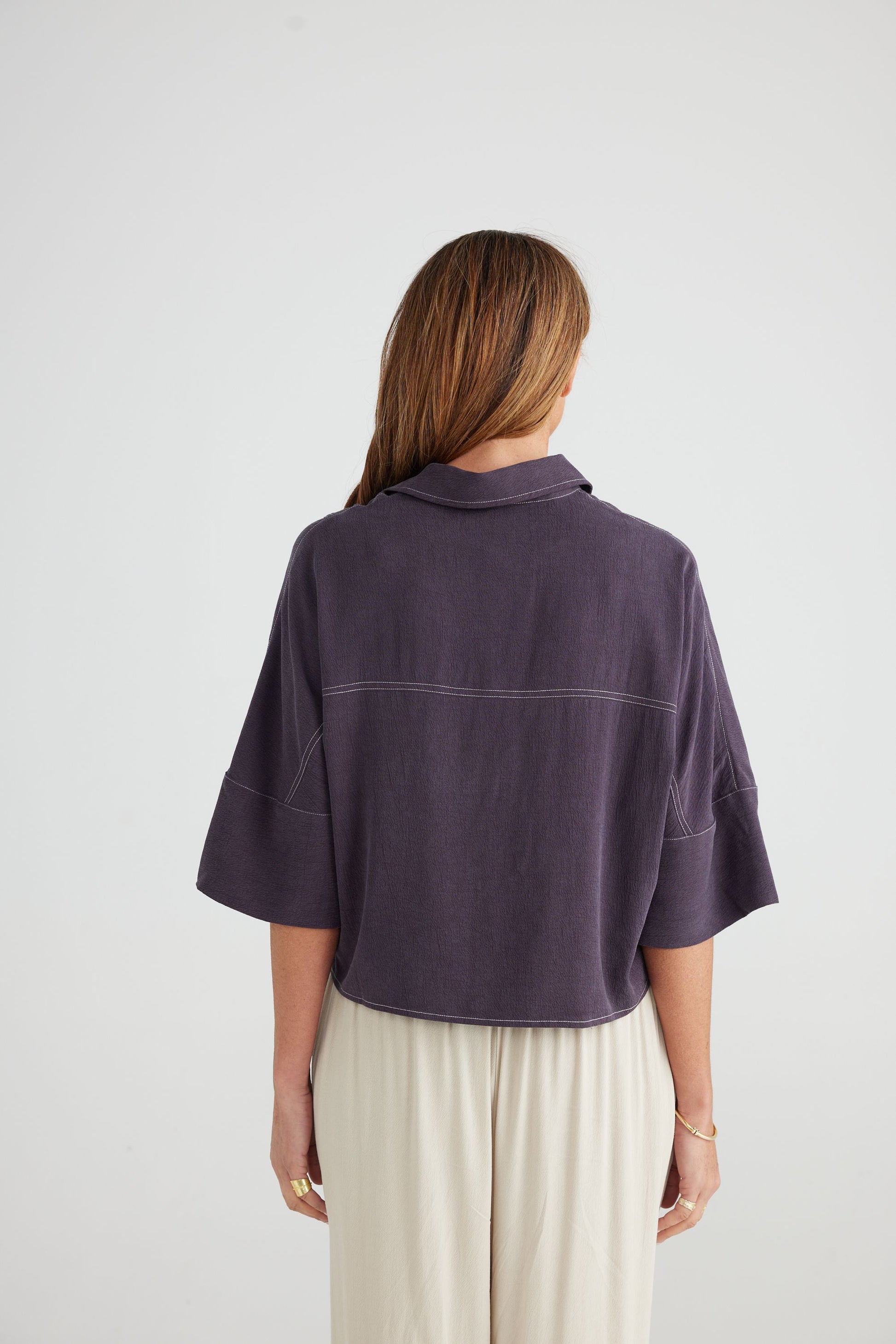 We love this fabrication & photos do not do it justice! Made from a textured lyocell fabric, the Jancy Shirt is one of the most versatile pieces you could put into your wardrobe. A classic shirt style collar in a relaxed boxy fit with contrast stitching, you'll wear this piece for many years to come!