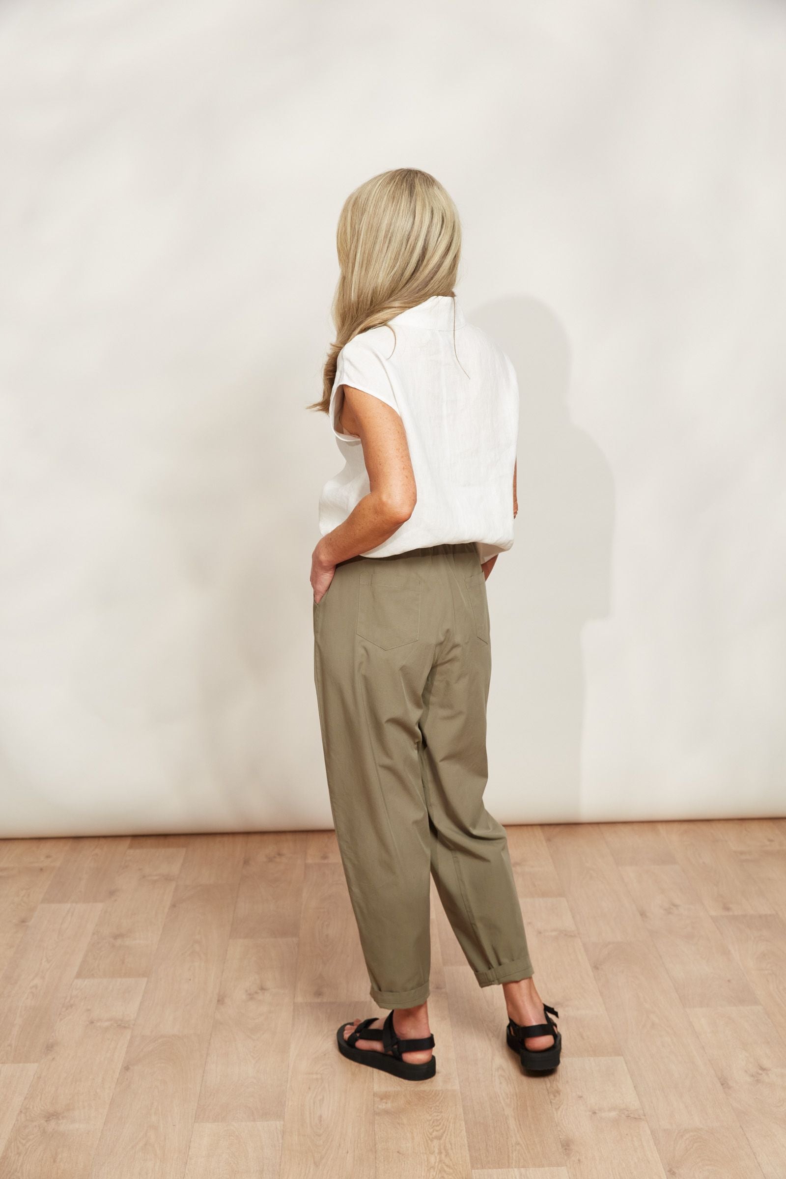 Unwind in style with the La Plage Pant, a fresh take on the classic tapered trouser. These pants are designed for comfort, boasting a half-elastic drawstring waist and a loose, tapered fit that's modern and relaxed. In a lightweight cotton blend, these pants feature functional side and patch pockets and subtle pintuck detailing. Pair them with a tank or loose tshirt and slides, and you're all set for a laidback weekend vibe.
