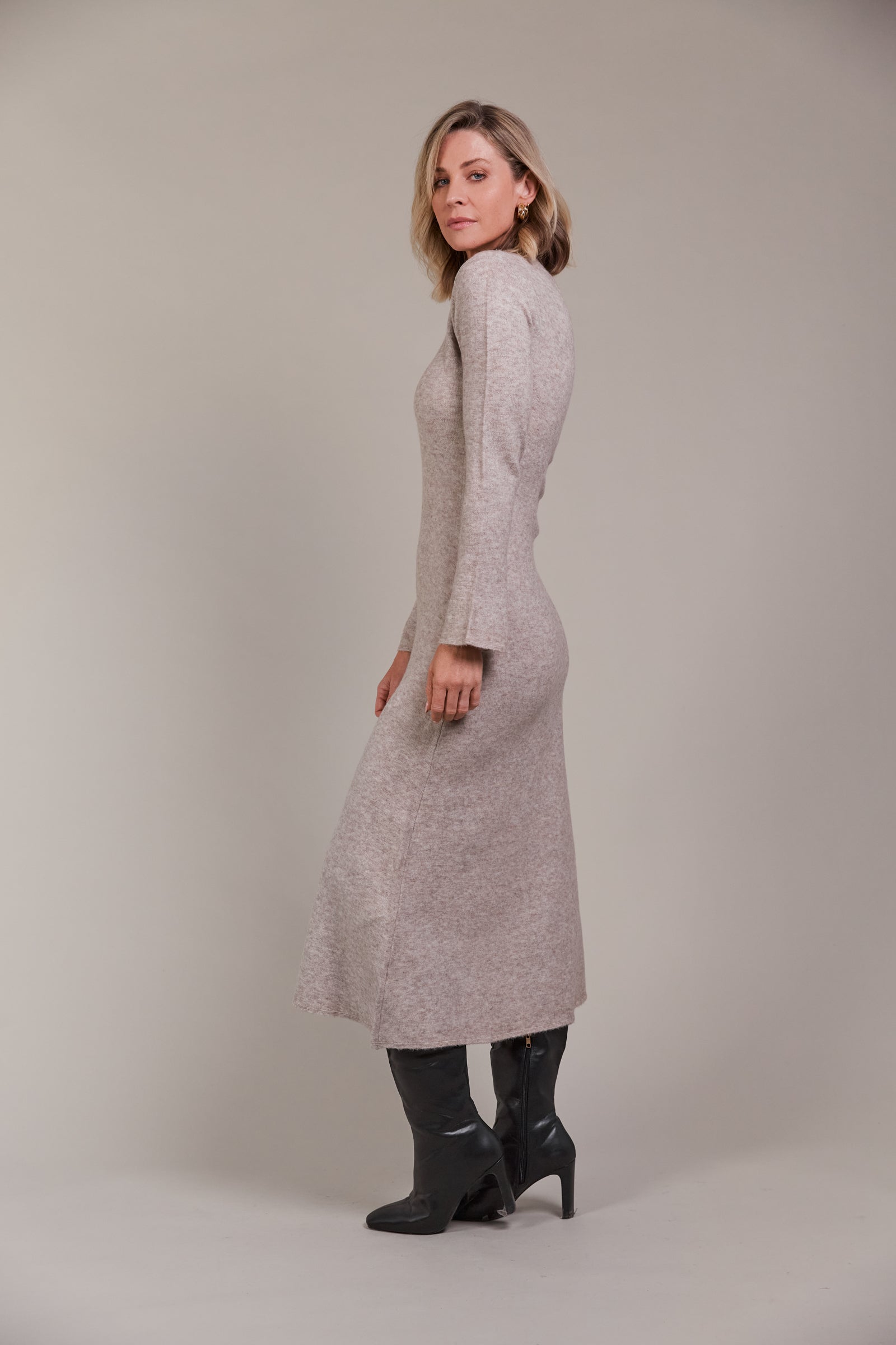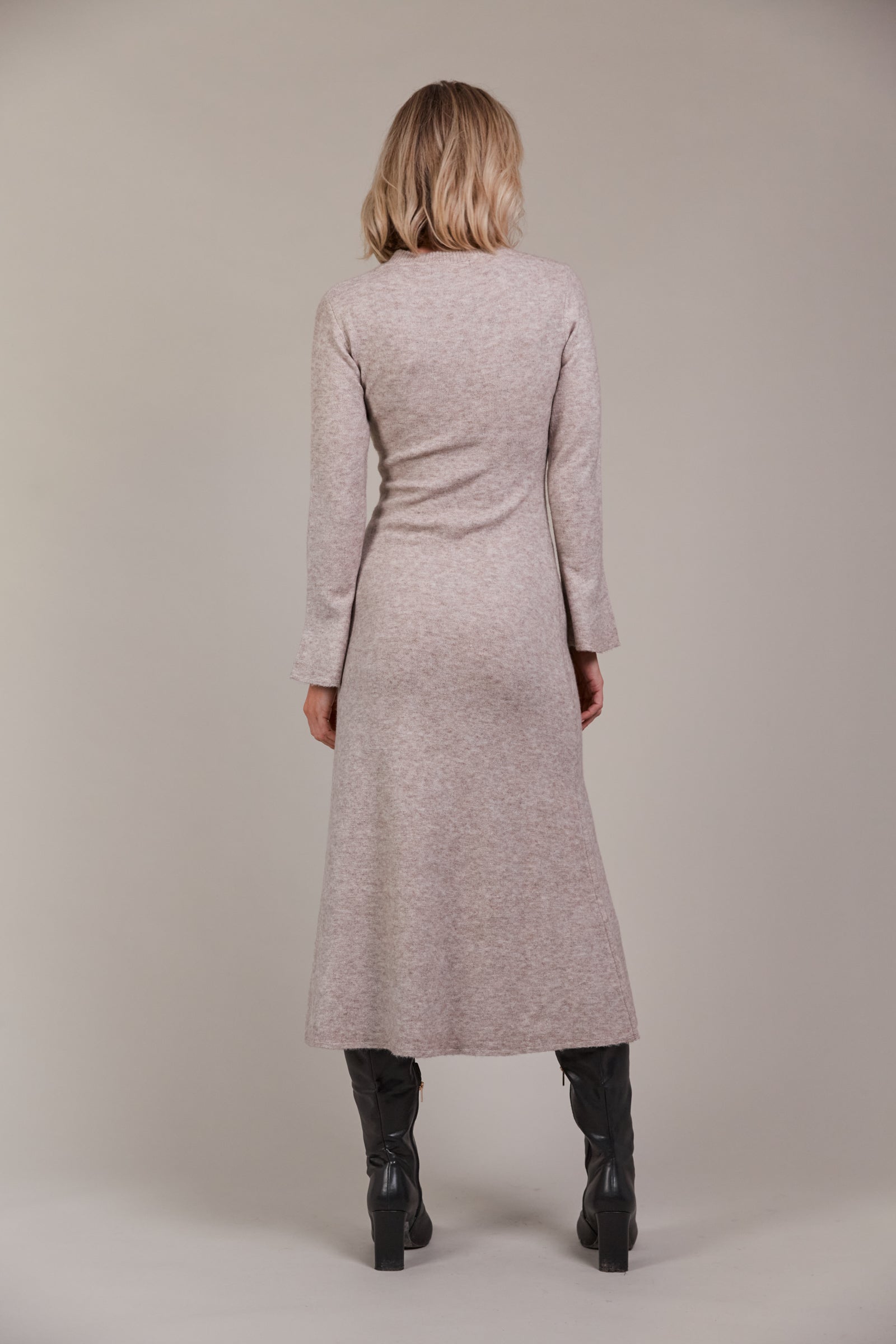 In a sumptuous wool blend, the Merano Knit Dress combines simplicity with sophistication. Key elements like the crew neckline, form-fitting bodice, and graceful A-line skirt give this midi dress timeless appeal. Perfect for chilly days, it's easily styled for both work and dinner. Just add boots, understated accessories, and a warm wool coat for a refined yet cosy outfit.