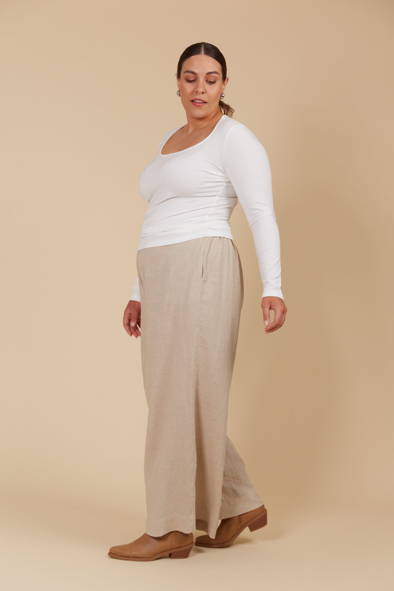 The Naria Scoop Neck Top redefines a wardrobe staple with its modern design and luxurious feel. It features a square neckline and a fitted, yet stretchy silhouette. Ideal for layering during the cooler months, the Naria Scoop Neck Top is a timeless addition to any closet.