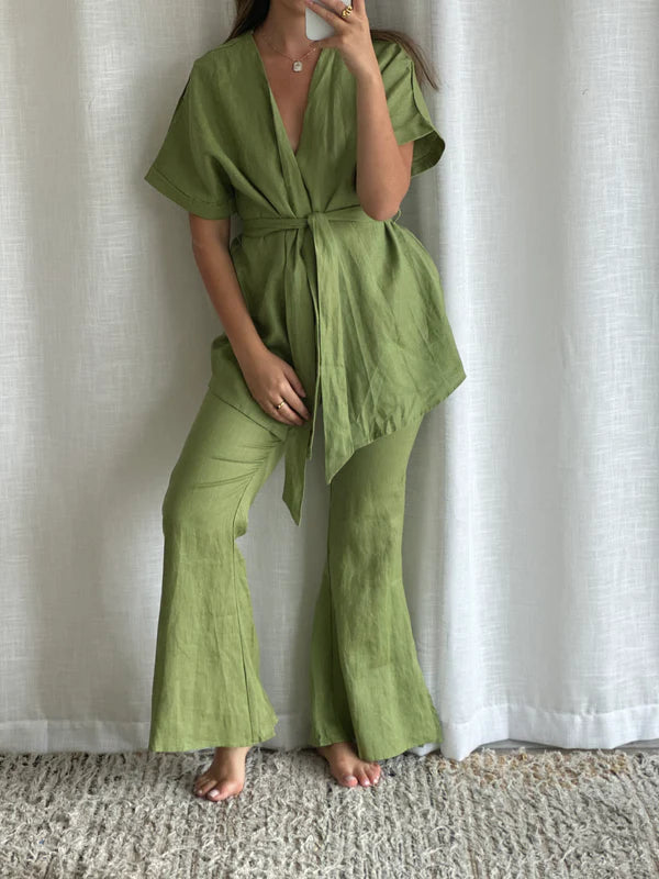 Feel the summer breeze in these lightweight linen Ness Split Leg Pants! With a bold split-leg design, you'll stand out from the crowd, whether you pair them with the matching Ness Wrap Top or mix it up with your own style. Enjoy the comfort and freedom of the perfect summer pant! Flat front with elasticated back for the ultimate comfort!