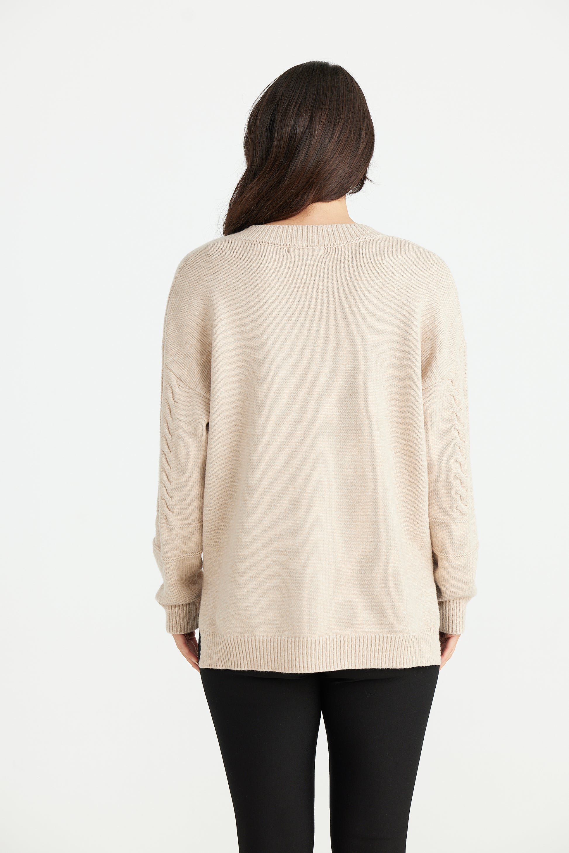 Introducing the Sommerset Knit - the comfiest way to elevate your wardrobe. This relaxed fit sweater features a V-neckline, a dropped back hem, and decorative cable knit placements for a stylish touch. With side splits for added movement, you'll never want to take this cozy knit off! BUST = S/M: 120cms, M/L: 128cms |