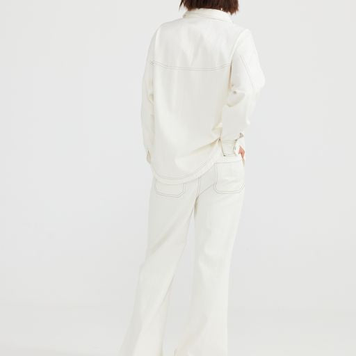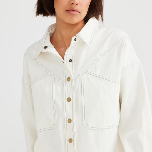 The Violet Shirt from Daisy Says is incredibly cool! The classic collared style, front press stud closure, relaxed boxy fit, front patch pocket feature, and front and back yoke detailing give it a timeless, yet modern vibe. The contrast stitching adds a subtle element of style that really pulls the whole look together. It's sure to be a favorite piece in your wardrobe!
