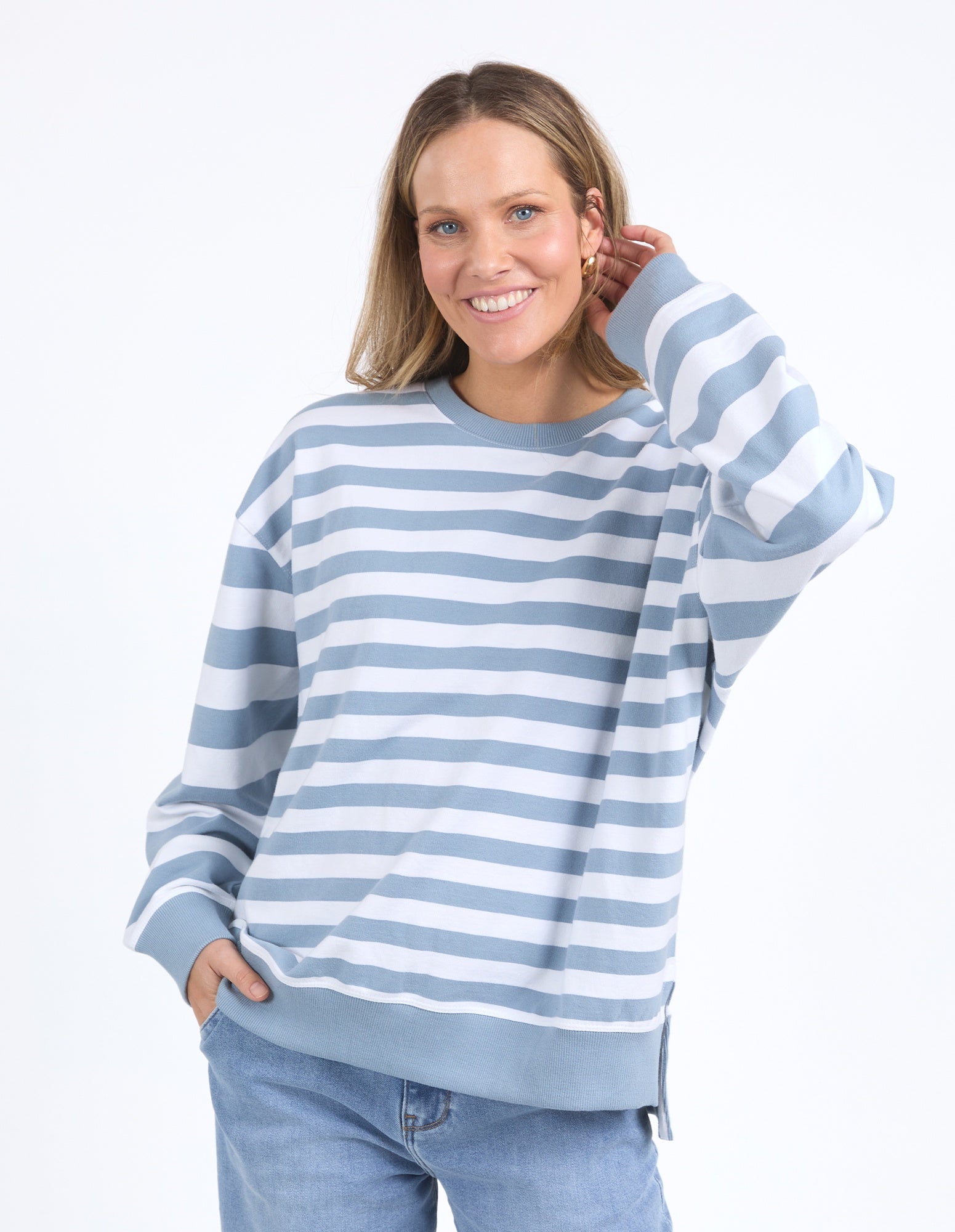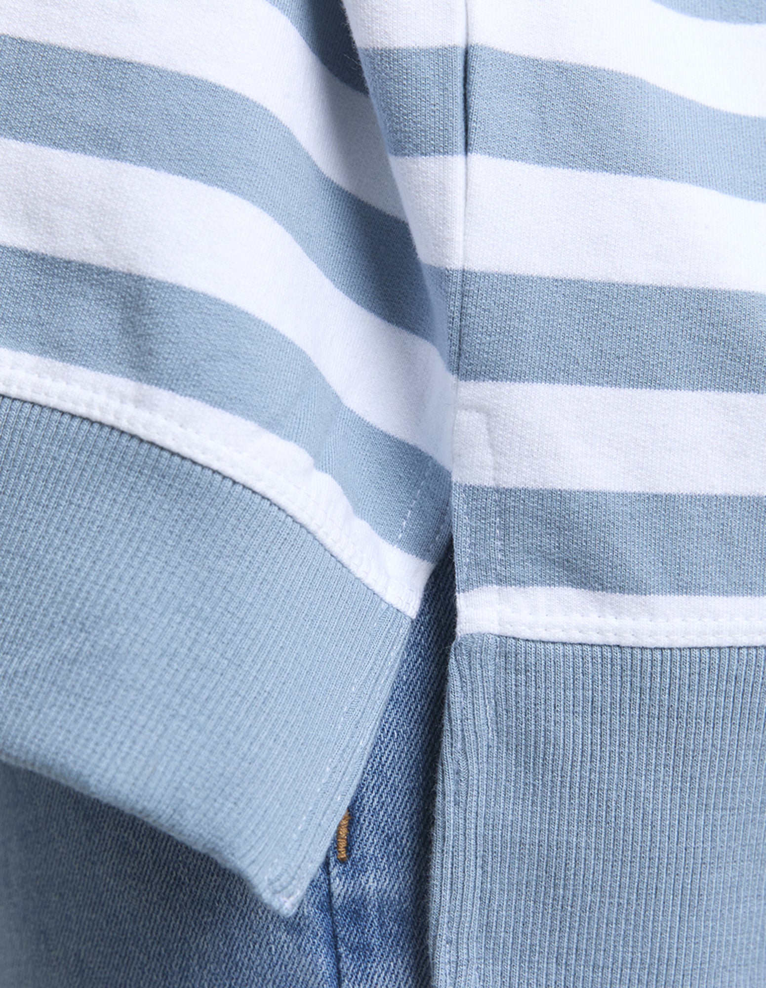 Stripes are always in fashion. A classic Elm 100% cotton crew with printed stripes and a curved hemline for style & comfort.