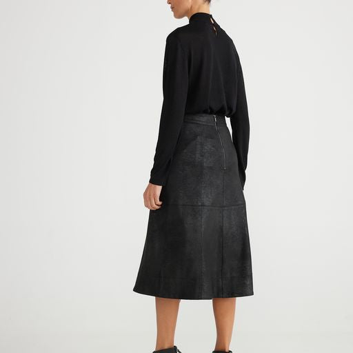 The Wilson Skirt from Brave + True is the perfect skirt for the season! Its vegan PU material is wonderfully soft and comfortable, plus the wide waistband makes it a great fit for any body type. Its design seams with top stitching adds a touch of style and the centre back exposed zip adds a unique detail. This skirt is sure to turn heads and make a statement!